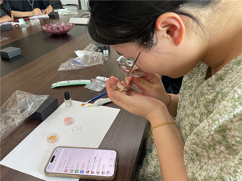 中秋,不僅是一個節(jié)日,更是一種文化的傳承,從嫦娥奔月的美麗傳說到蘇軾“但愿人長久,千里共嬋娟”的千古絕唱,每一段故事,每一首詩篇,都是中華兒女對美好生活的向往與追求,讓我們在月光下,重試那些被遺忘的習(xí)俗,讓傳統(tǒng)文化的種子,在新生代心中生根發(fā)芽,綻放出更加燦爛的花朵。9月14日下午,浙江三科線纜股份有限公司工會委員會組織開展了“螺鈿胸針DIY”的中秋主題活動。高奢首飾里的古法沉淀,通過非遺技術(shù)去感知傳統(tǒng)文化,讓精神狂想的蝴蝶飛出來。以貝石之心,銘金蝶之質(zhì)。讓螺鈿胸針來開啟中秋的篇章。