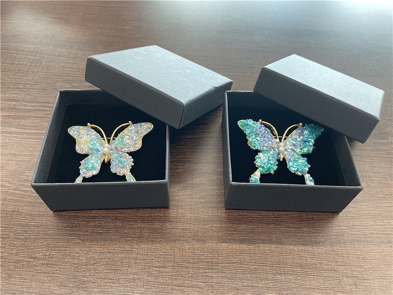一、準(zhǔn)備材料:螺鈿碎片或粉末、胸針底托、膠水、鑷子、刷子、亮油等。