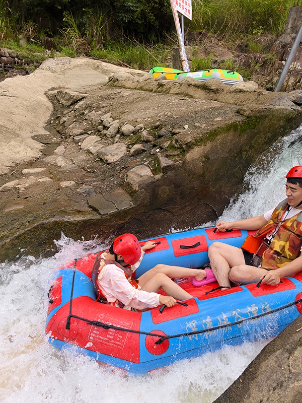 午餐過后,最讓人期待的深溪峽谷漂流即將登場。2.8 公里的漂流河道,藏著近百米的落差,70% 的激流段讓心跳全程加速。坐上皮筏艇,時(shí)而在湍急的河灘上飛馳,看浪花飛濺打濕衣衫;時(shí)而墜入碧綠的深潭,在悠悠波光里欣賞兩岸層巒疊嶂的倒影。大小落差十多處,每一處都是不同的驚喜,員工們并肩作戰(zhàn),尖叫與歡笑齊飛,在 22℃的山泉水里體驗(yàn) “速度與激情”,也收獲了并肩同行的珍貴情誼。